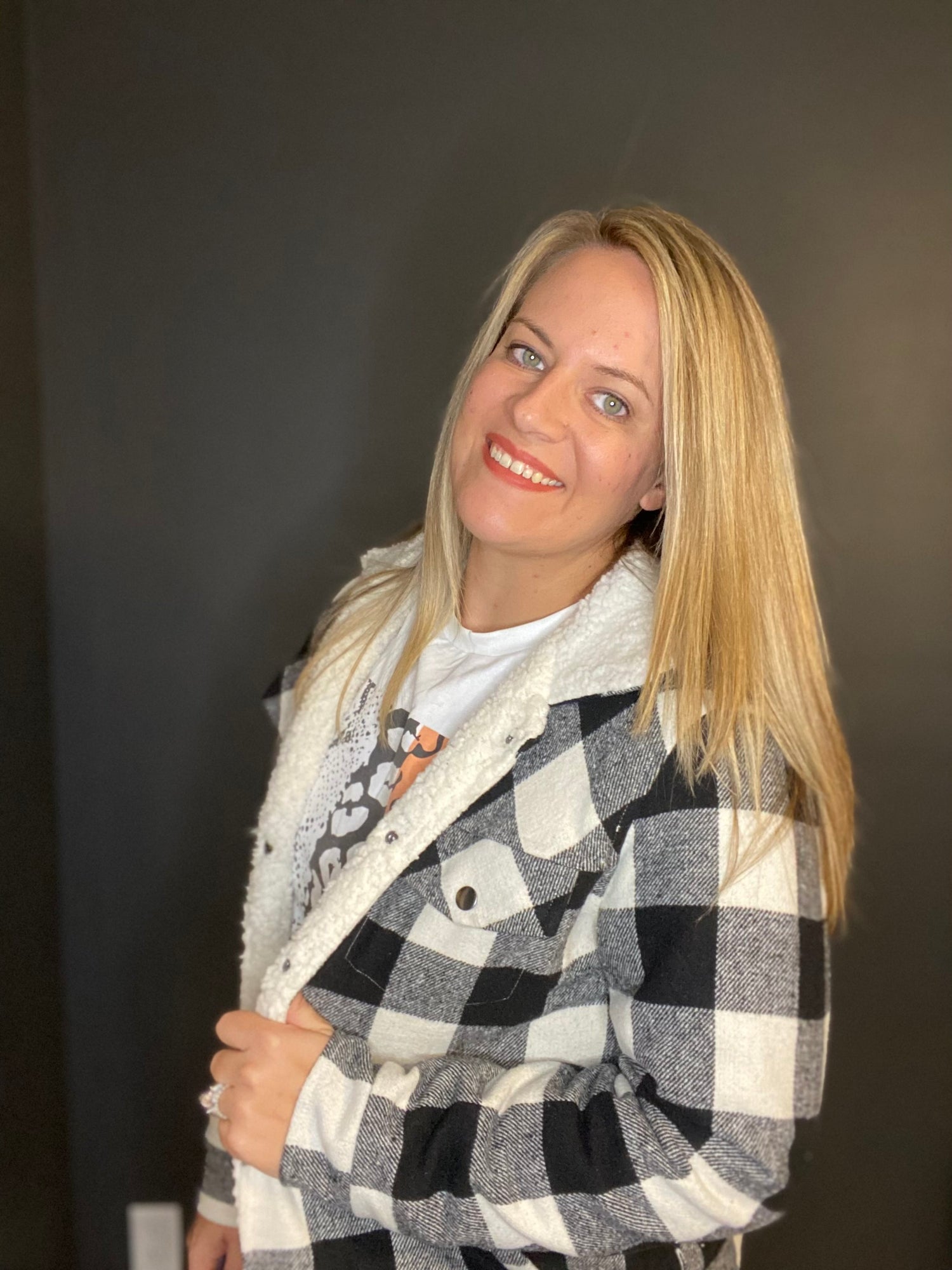Black and White Plaid Sherpa Jacket