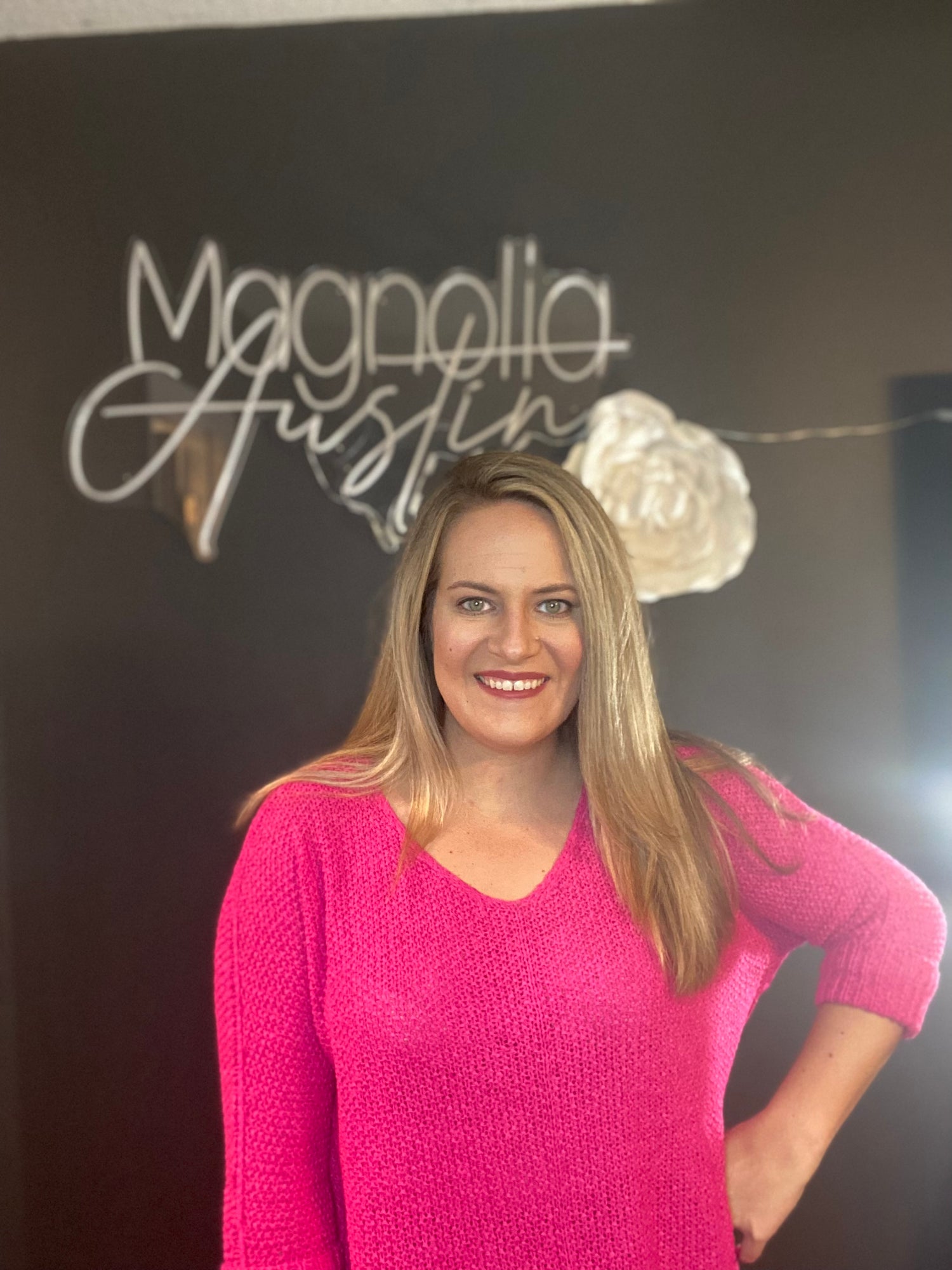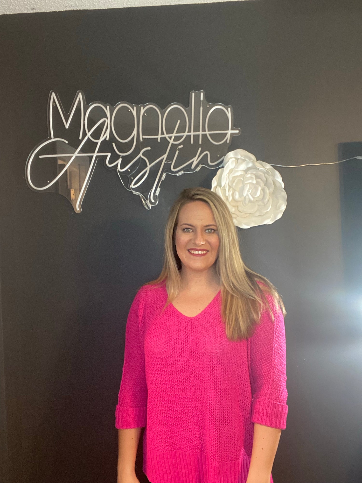 Light weight hot pink knit sweater with 3/4 length sleeves
