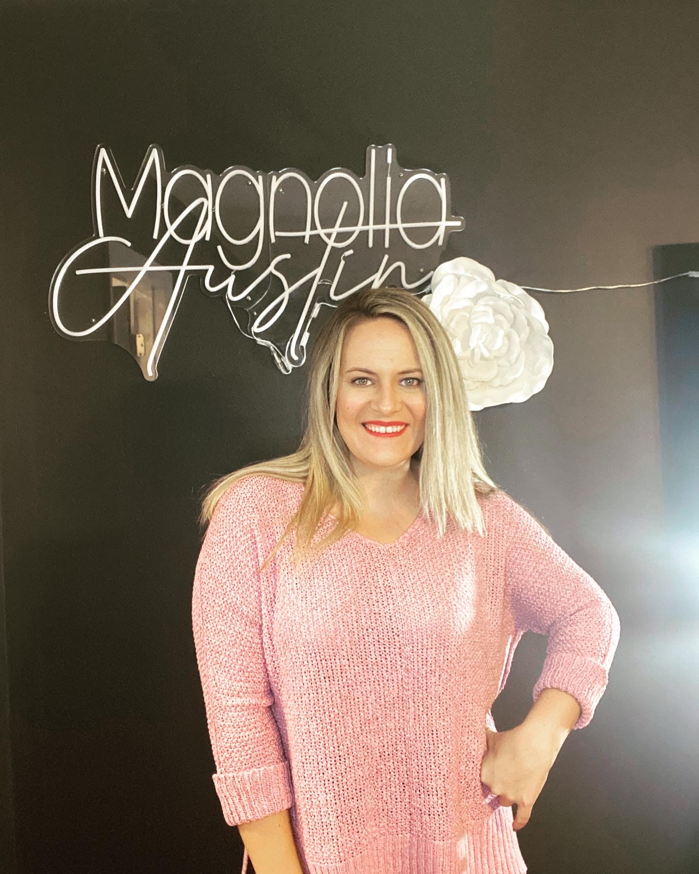light weight, knit, mauve sweater with 3/4 length sleeves